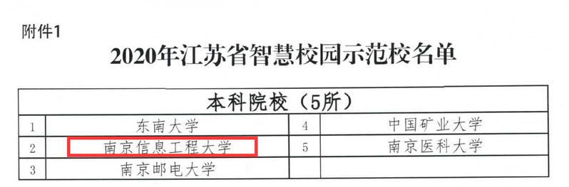 新年伊始传喜讯。近日,省教育厅、省工业和信息化厅联合公布了2020年江苏省智慧校园及示范校审核认定结果,我校被认定为“江苏省智慧校园示范校”,荣获江苏省教育信息化领域最高殊荣。