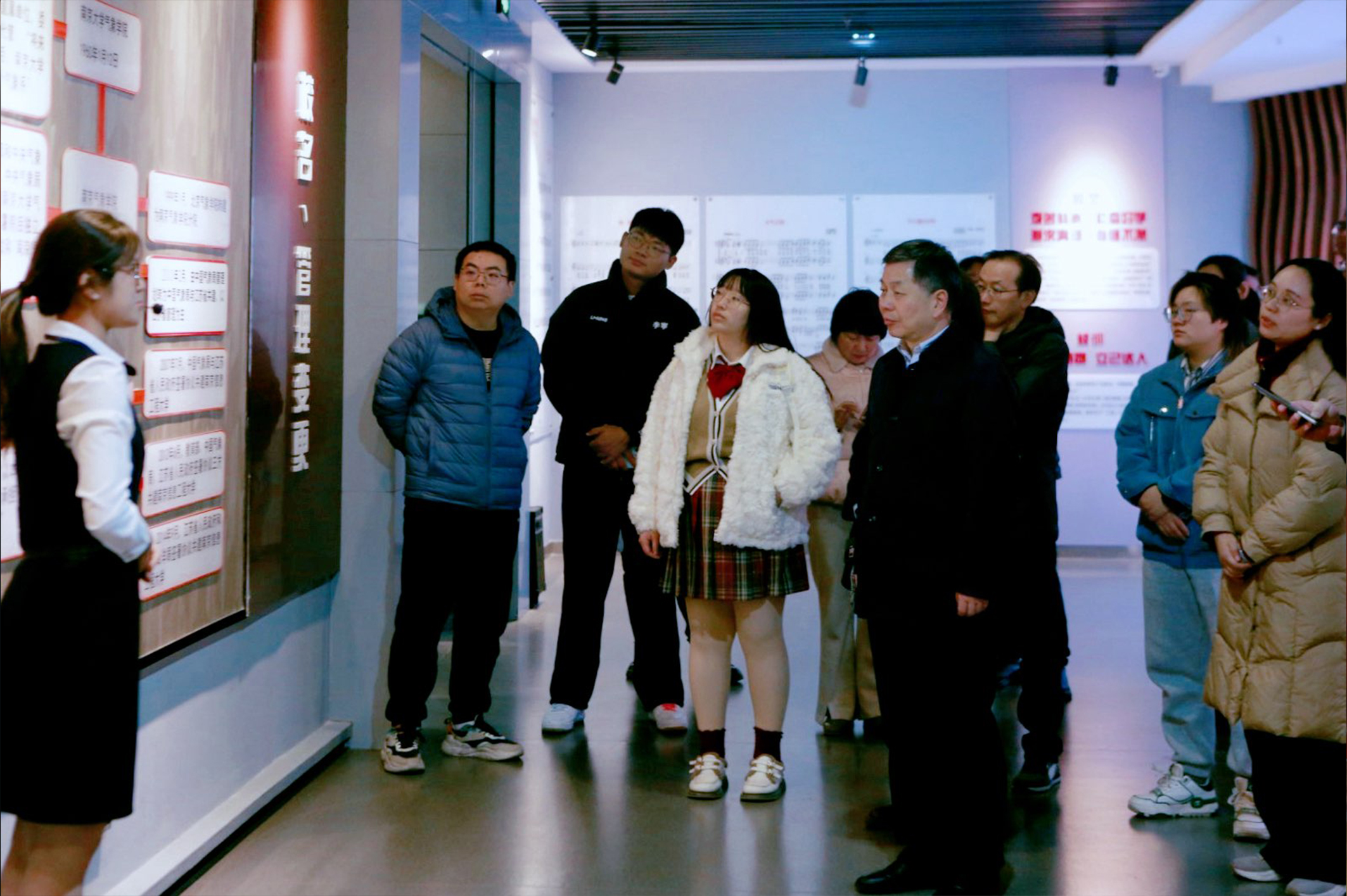 12月4号下午,江浦高级中学领导及骨干教师一行参观校史馆,校史文化宣讲团朱清盈接待讲解。